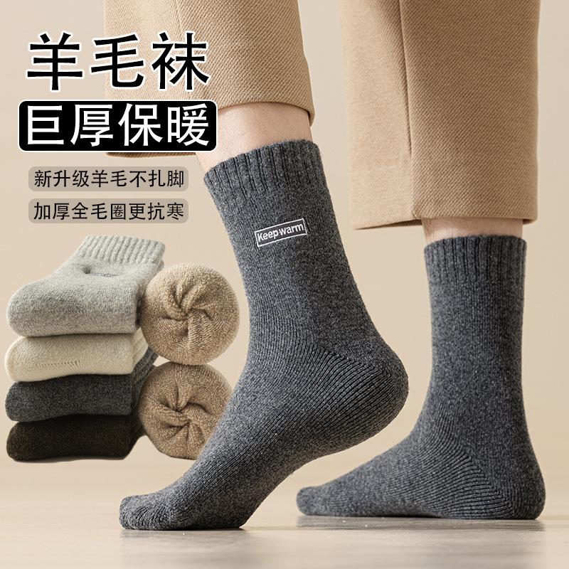Wollsocken Herren Mittellange Socken Saison Warm Plüsch Verdickt Frottee Socken Bestickte Buchstaben Super Dicke Herrensocken