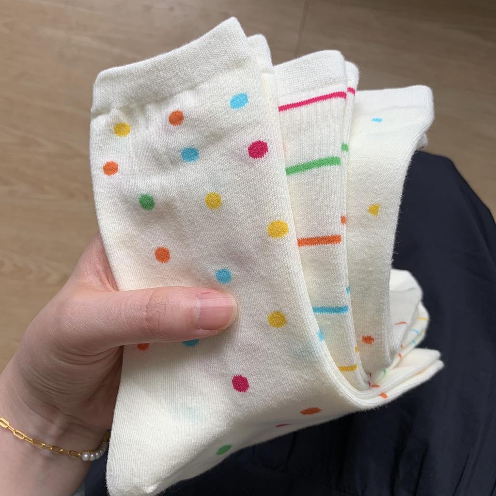 Herbst Originaldesign Farbige Punkte Mittelhohe Socken Niedliche Cartoon Studenten Mittelhohe Socken Gestreifte Punkte