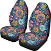 Bright Blossoms Colorful Boho Floral Print Car Seat Covers For Women,Universal Auto Front Seats Protector Fits For Car,SUV Sedan,Truck