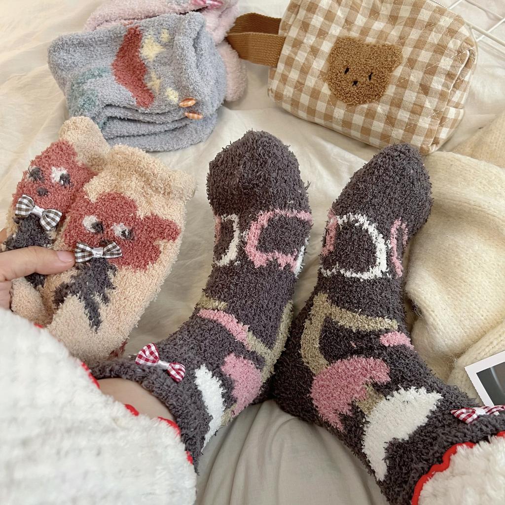 Winter Tulpe Korallenfleece Socken Damen Süß Und Niedlich Fleece Winter Warm Boden Socken Verdickte Mittelrohrsocken