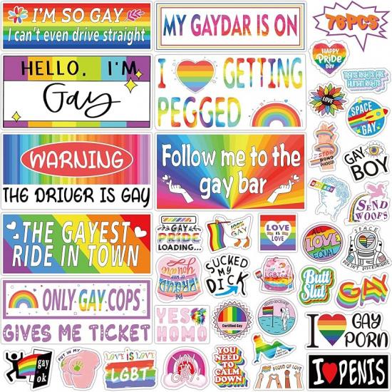 76 PCS Original Funny Gay Prank Bumper Stickers, Funny LGBT Gay Stickers For Cars Decals Motorcycle Truck Vehicles Luggage Sticker For Adults Bumper