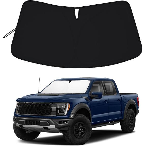 PIMCAR Windshield Sun Shade For Ford F150 -2025 | Premium 310T Reflective UV & Heat Protection | Fit Foldable Sunshade With Storage Pouch, Dashboard