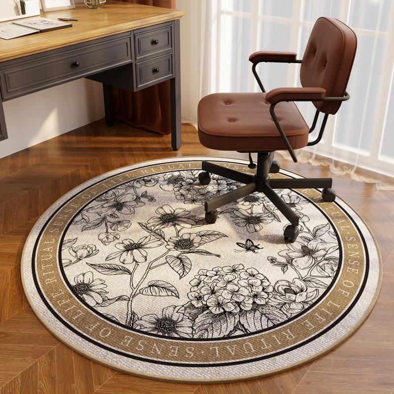 Vintage Floral Pattern Carpet Elegant Home Decor Rug Soft Anti-slip Round Floor Mat for Study Room Living Room Office Entrance