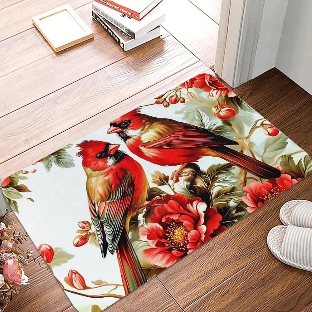 Christmas Red CardinalBird Print Welcome Door Mat Non Slip Bedroom Bathroom Kitchen Doormat Polyester Home Carpet Decor Doormat
