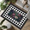 Floral Checkered Home Rug Vibrant Flowers Black and White Runner Living Room Bedroom Decoration Carpet