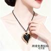The same black rope big love pendant necklace plated with real gold exaggerated personality peach heart sweater chain spring and summer