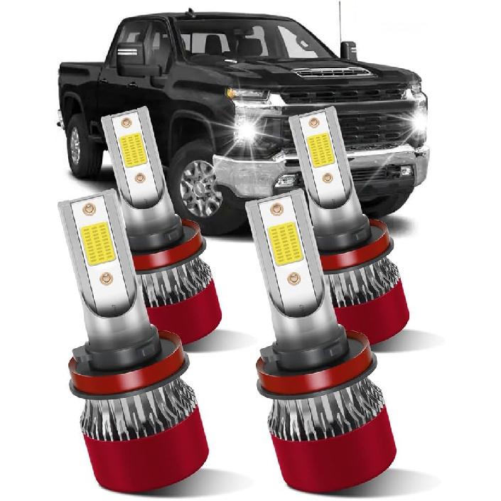 Light Bulbs Compatible for Chevrolet Silverado 1500 2500 3500HD H11/H9 High Beam H11/H9 Low Beam Fog Light Brightness 800% with Fan Plug and Play