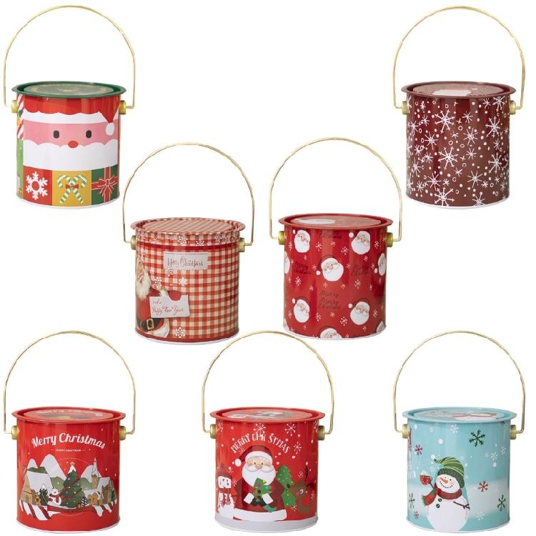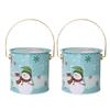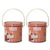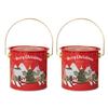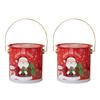 2pcs Decorative Christmas Candy Boxes Handheld Round Bucket Portable Sweets Tins with Handle for Family Gathering