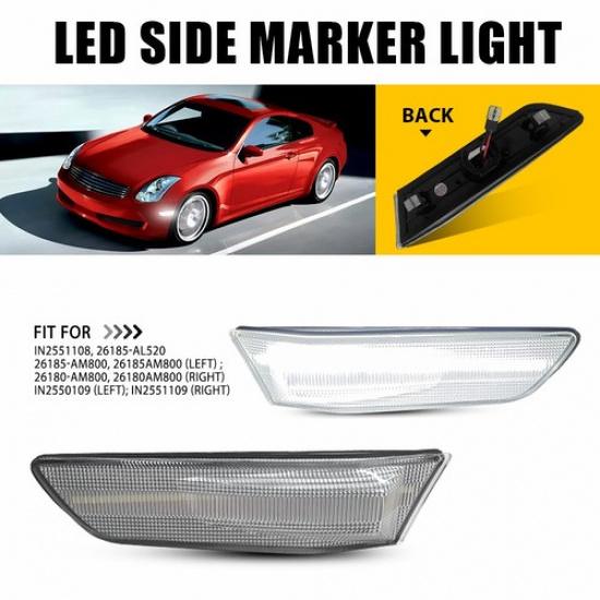 Pair Front Clear White Side For Marker LED Light Skyline Nissan V35/Infiniti G35