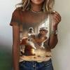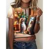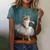 Women's T-Shirt 3d Cute Fun Cat Print T-Shirt Casual Loose Fashion Round Neck Summer Women's Breathable Oversized T-Shirt