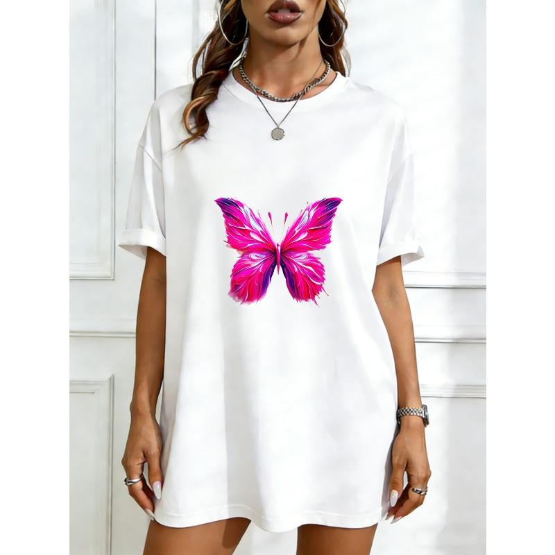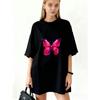 Übergroßes T-Shirt-Kleid Schwarz Rosa Schmetterlingsdruck Für Freizeitkleidung