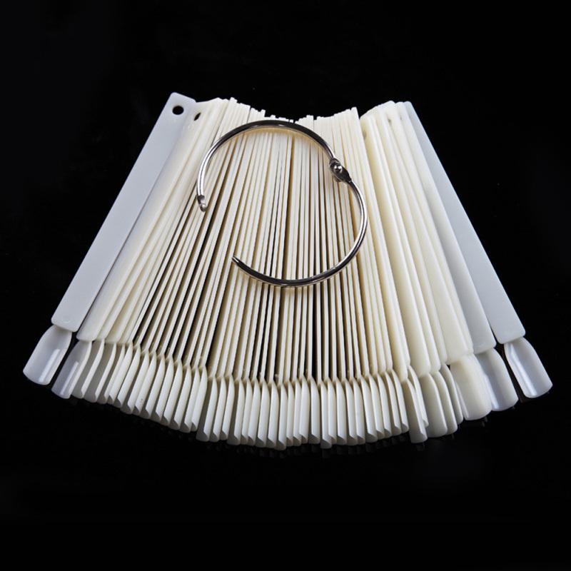 50 Sticks Fake Nail Art Display Stand Practice Nail Gel Manicure False Nails Fan Shape Shelf Color