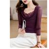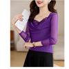 Einfarbiger Pullover Mesh Langarm Frühling und Herbst Sexy Spitzenoberteil Feminin Unterzieh-T-Shirt