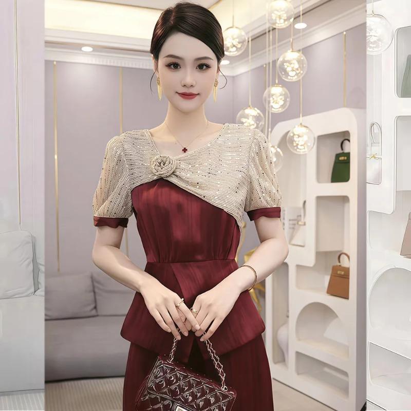 Rotes Pailletten-Kurzarm-Top Damen Sommer Neu High-End Leichter Luxus Western-Stil Einzigartiges Kleines Hemd Top