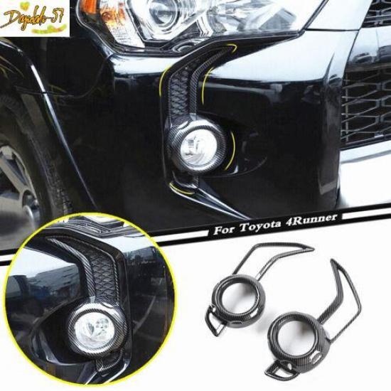 Car Carbon Fiber Front Fog Light Lamp Cover Trim For Toyota 4Runner 2014-