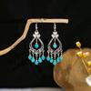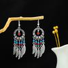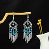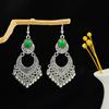 Retro Round Hollow Ethnic Style Earrings, Bohemian Style Tourist Attractions, Turquoise Fringed Earrings For Women