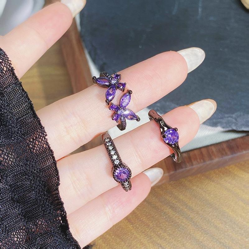 Dark Purple Diamond Zircon Colored Treasure Butterfly Opening Ring Personality Niche Punk Retro Advanced Sense Stacked Ring Woman