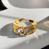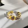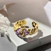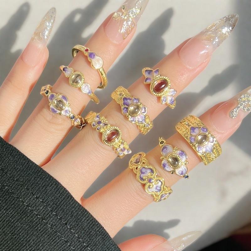 Violet Purple Enamel Drip Open Ring Medieval French High Sense Flower Ring Female