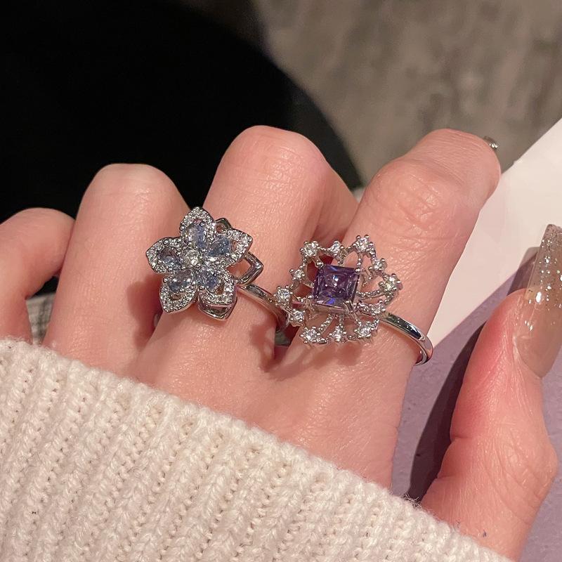 Nine Purple From Fire Niche Rotatable Rotating Petals Purple Zir*****Pen Ring Light Luxury High-End Exquisite Accessories