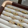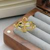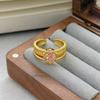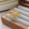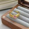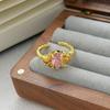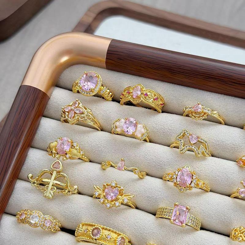 Medieval Vintage Pink Zircon Colored Treasure Open Ring Niche Light Luxury High Sense Stacked With Diamond Rings Woman