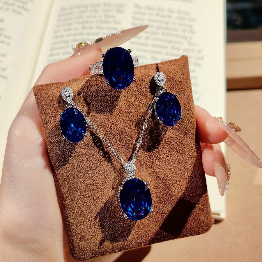 High-End Schwerindustrie Design Realistisches Königsblaues Set Luxus Voll Diamant Anhänger Offener Ring Farbige Schatz Rosa Diamant Ohrringe