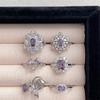 Niche Colored Treasure, Sweet And Cool Purple Diamond, Daisy Flower, Butterfly Opening Ring, Female Light Luxury And Cold Wind Stacking, Wearing Wind