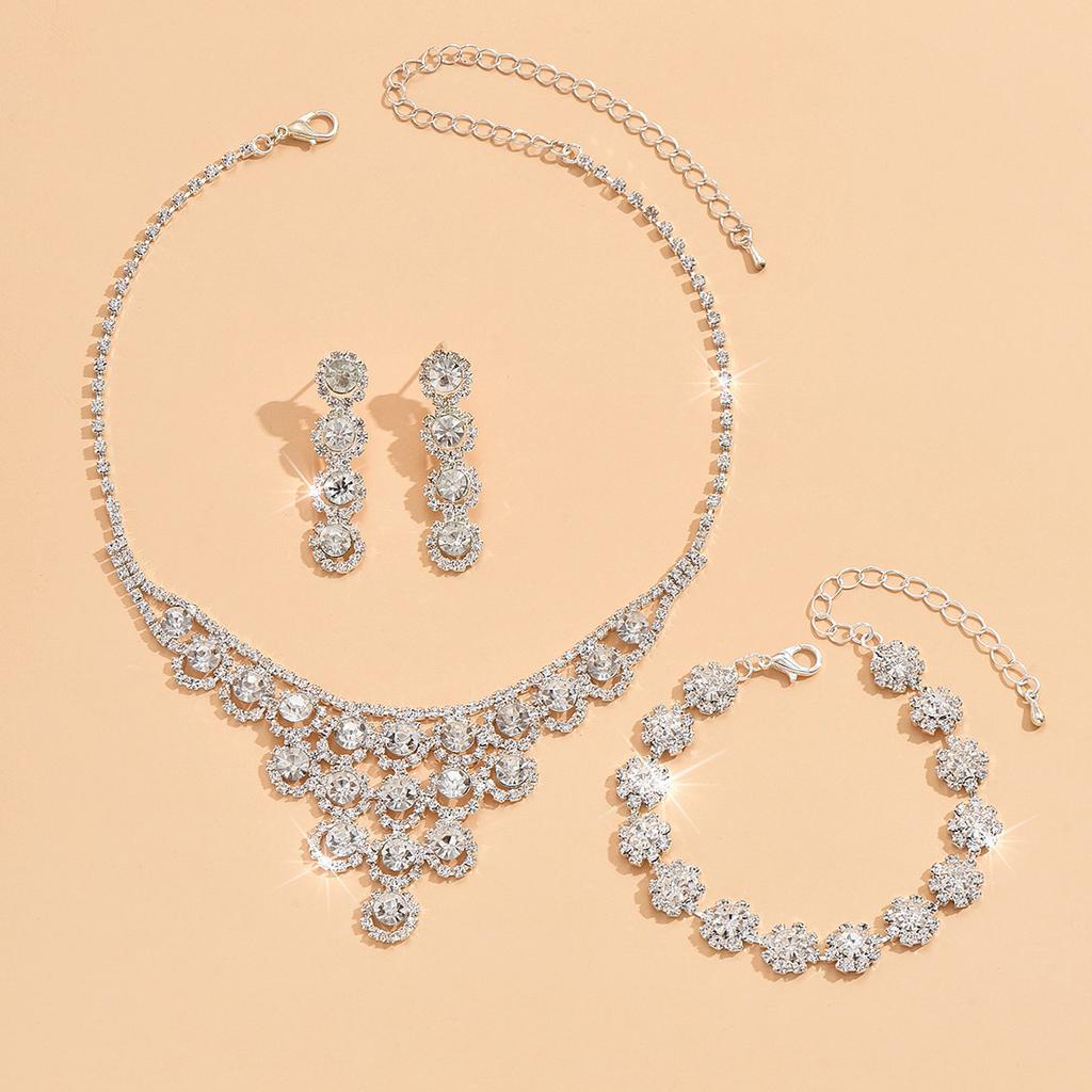 Wedding Accessories Set Rhinestone Necklace Earrings Set Dinner Dress Collarbone Chain Bridal Jewelry Set Women