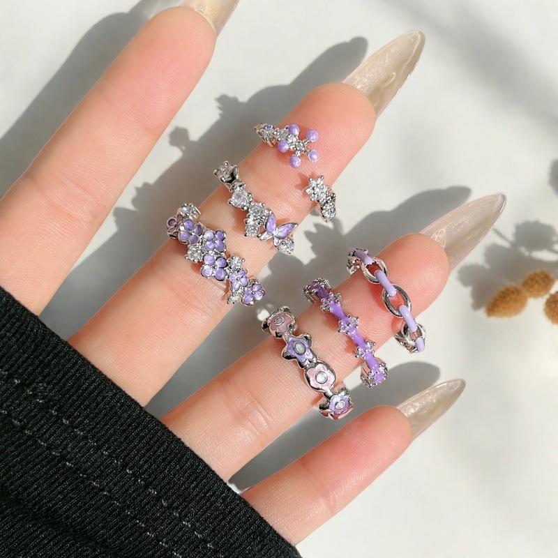 Purple Romantic Butterfly Flower Enamel Dripping Open Ring Niche Unique Sense Light Luxury High Sense Ring