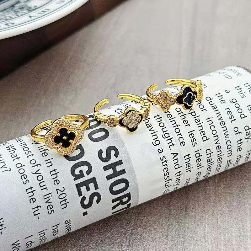 Niche High-End Zircon Enamel Dripping Oil Dark Four-Leaf Clover Open Ring, Female Delicate Personality Stacked Index Finger Ring