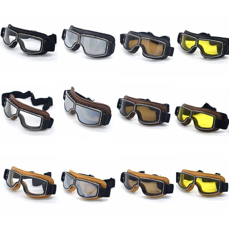 Leder Vintage Scooter Brille Pilot Ski Sonnenbrille Helm Brille