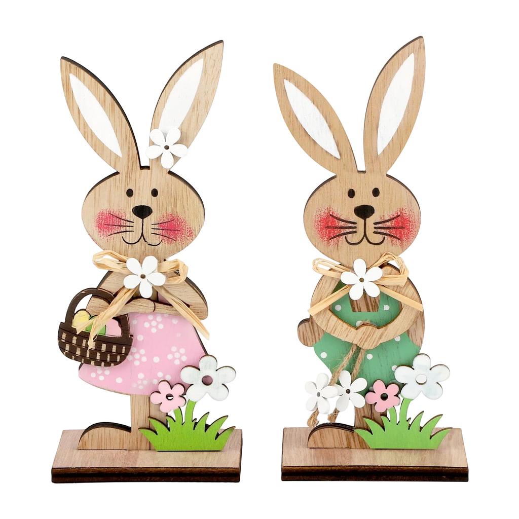 2-teilige Holzhasen-Dekoplakette, Osterhase zum Aufstellen, Rustikale Tischdekoration, Geeignet für Zuhause, Geschenke für Frühlings-Geburtstagsfeiern, Wanddekorationen.
