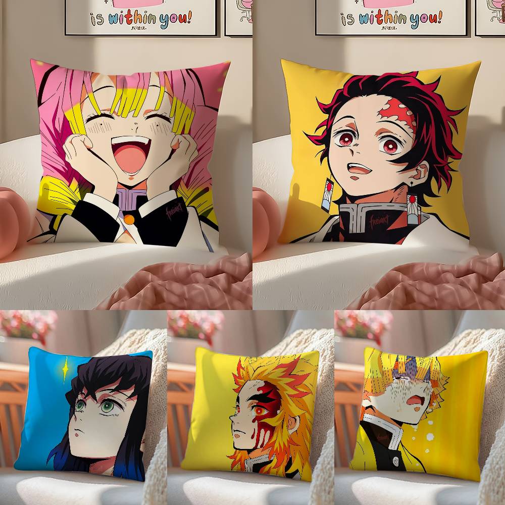 D-Demon Slayer Kimetsu No Y-Yaiba Pillow Case Anti-dustmite Pillowcase Invisible Zipper Silky Short Plush Sofa Cushion Cover