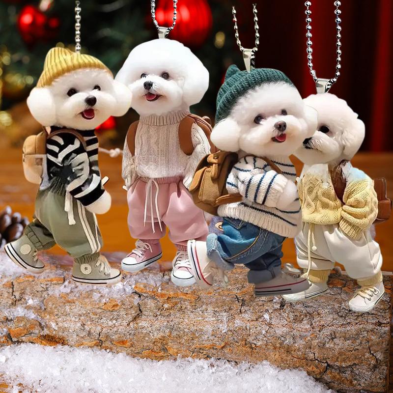 2D Acryl Kreativer Welpenmann Rucksack Rückspiegel Anhänger Auto Hängende Ornamente Auto Dekor Zubehör Geschenke Damen Herren