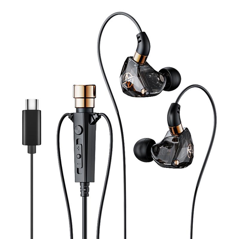 Typ-c Wired Headset With Microphone Noise-canceling Earbud In-ear Headphones For Live Singing