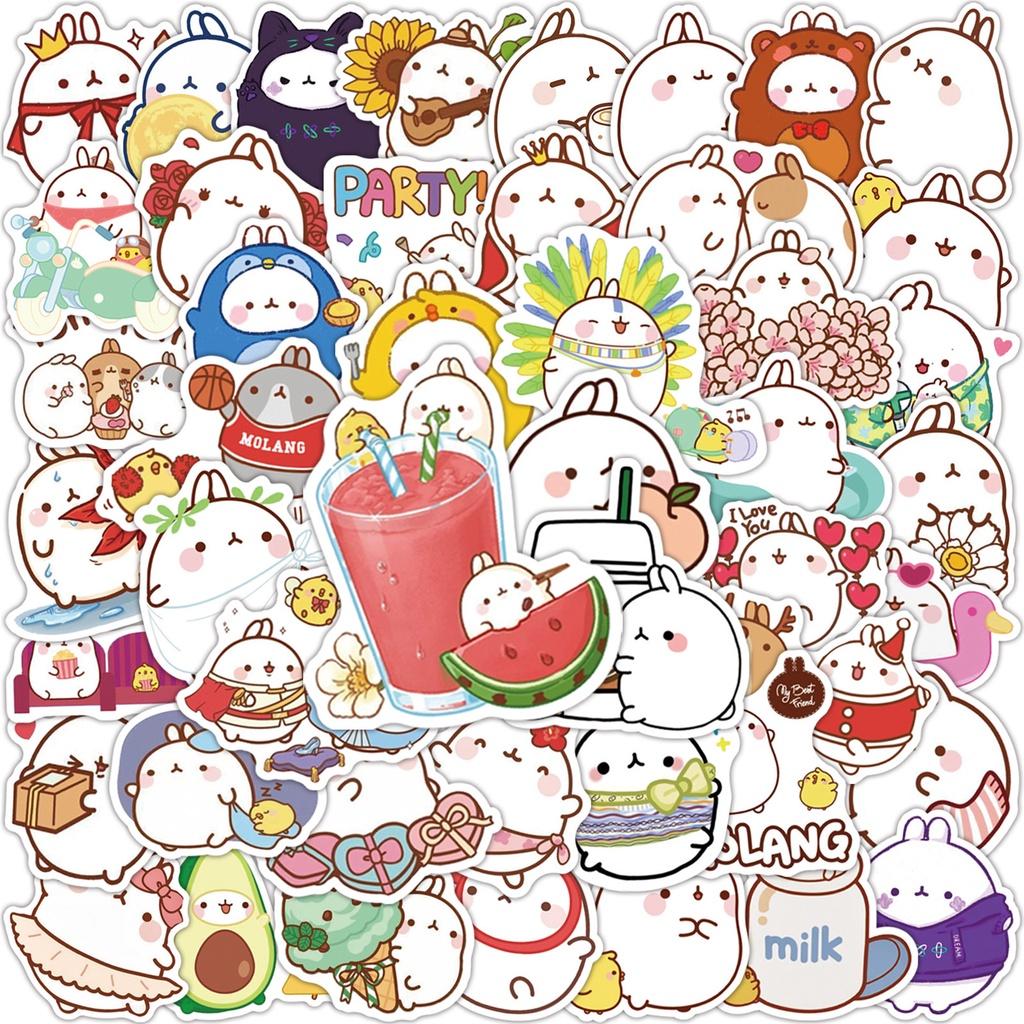 50PCS Cute Cartoon Round Rabbit Waterproof Stickers For Suitcase Notebook Skateboard Decal