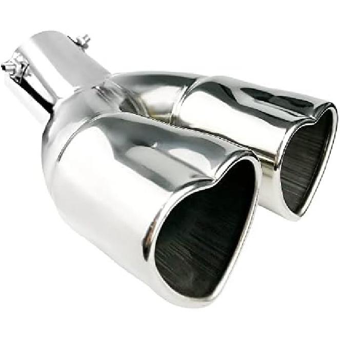 2.5 Inch Inlet Dual Exhaust Tips Muffler Tip,Chrome Heart-Shaped Exhaust Tip,Universal Bolt-On Double Tube Exhaust Muffler (Silver,Curved)