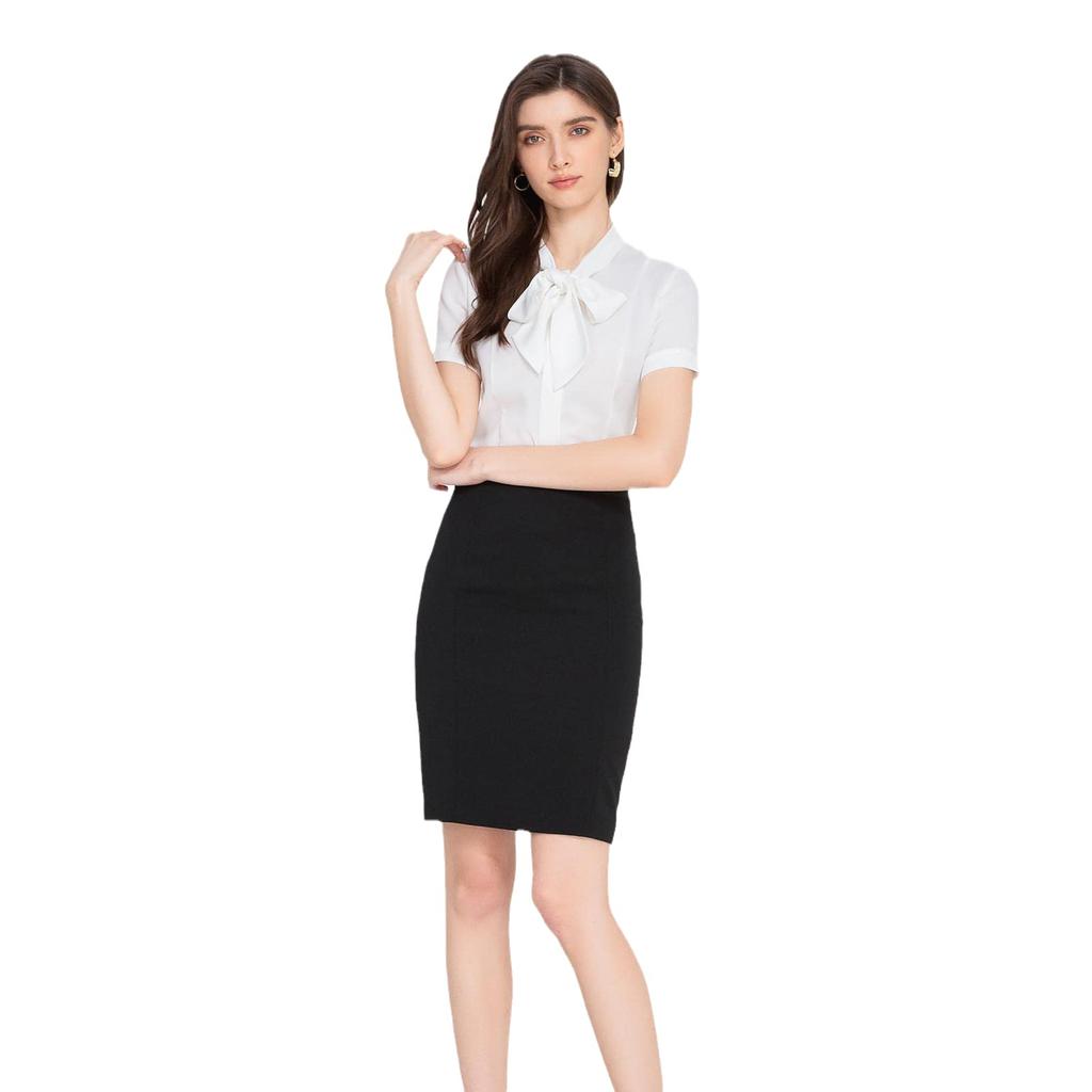 VOZZA Office Elastic Waist Pencil Stretch Mini Skirt Women's Knee-Length Skirt, (Size M, Black)