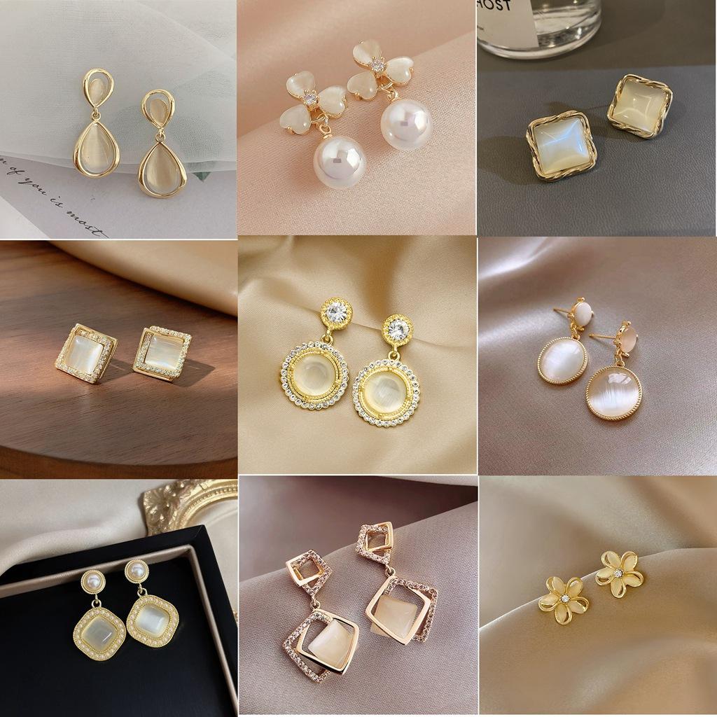 S925 silver needle opal stud earrings femininity geometric love premium earrings ins style Korean earrings collection