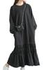 Gold Japan Plus Size Long Open Sizes Women's Dress, Sleeves, Shoulder, Ribbon, Shirring, Fall/Spring, LL, 3L, Black, fem-600
