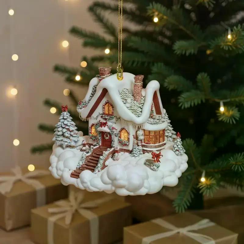 Schneehaus Weihnachtsbaum Hängeornament Weihnachtsfeier Dekorationen Für Weihnachtsbaum Anhänger 2D Acryl Flach Weihnachtsanhänger