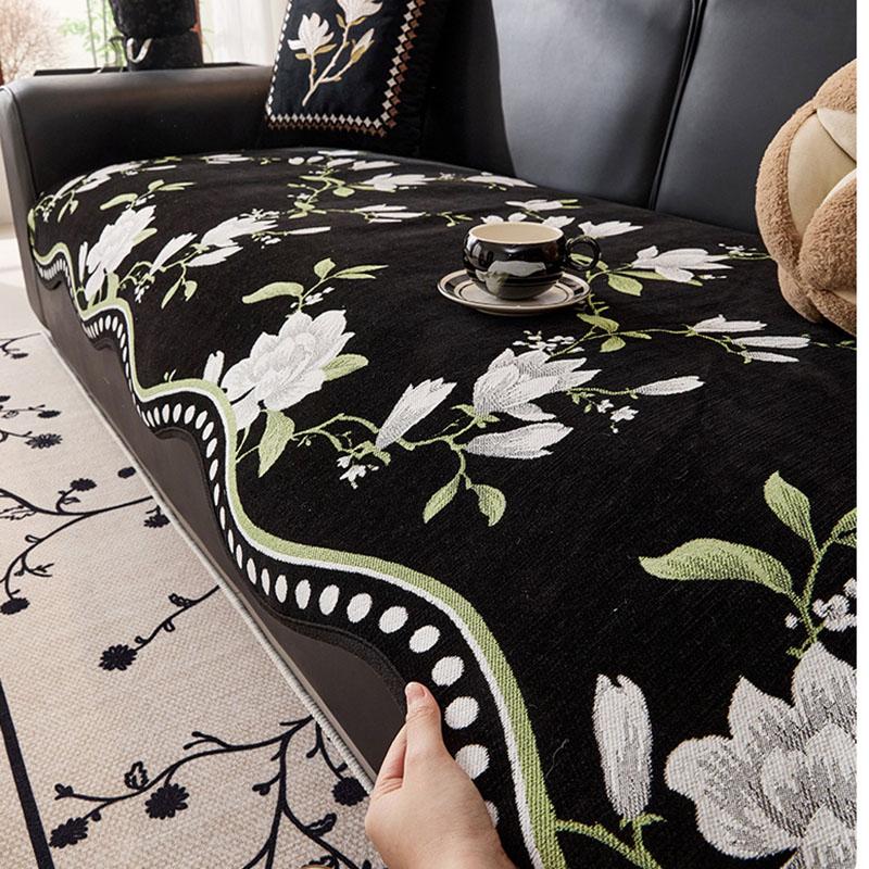 Retro Unregelmäßiges Chenille Sofakissen Blumendruck Rutschfester Bezug Für Wohnzimmer Vier Jahreszeiten Universal Möbelüberwurf