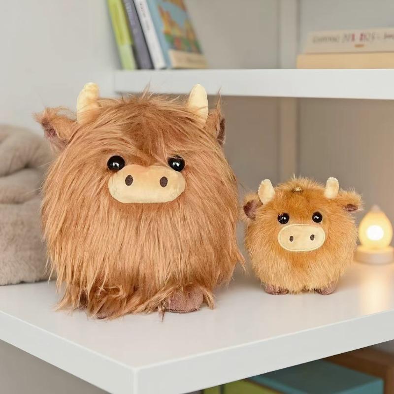 Simulated Scottish Highland Cow Plush Toy Cute Stuffed Animal Pendant Super Soft Plushie Doll Backpack Accessories X-mas Gift