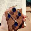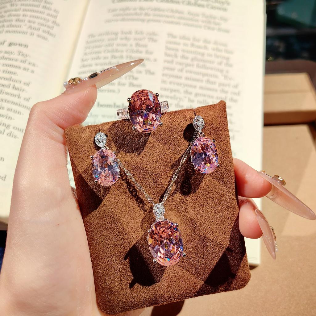 2025 Advanced Heavy Industry Blue Set Luxury Full Diamond Pendant Open Ring Colorful Pink Diamond Earrings