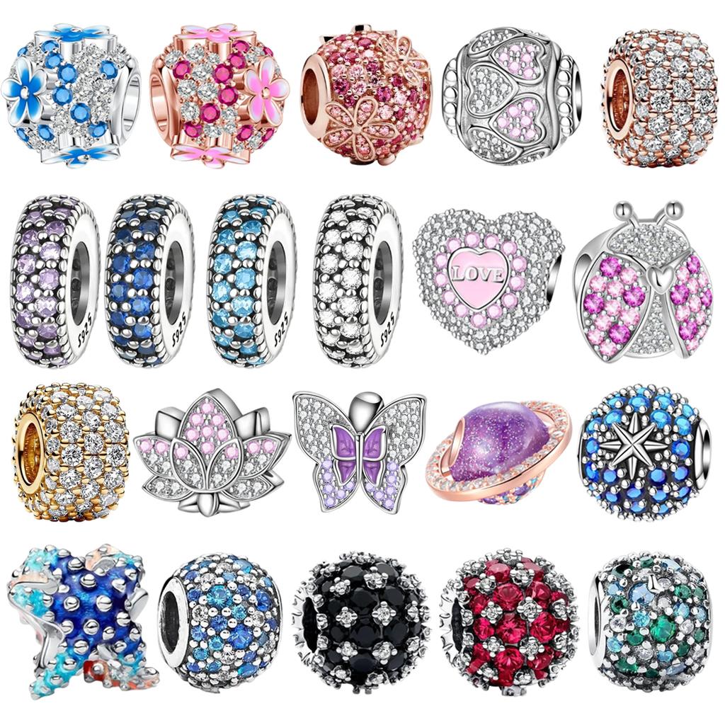 925 Silver Heart Blooming Rose Pendant with Colorful Full Diamond Charms for Bracelets Necklace Jewelry