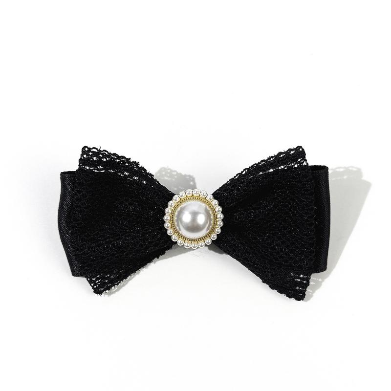 Schwarze Spitze Satinband Perlen Schleife Brosche Krawatte College Stil Damen Hemdkragen Pin Kleidung Dekoration Zubehör