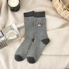 Women's Striped Embroidered Puppy Mid-calf Cotton Socks, Grey Simple Rolled-up Student Socks, Dui Dui Socks, Cute and Versatile