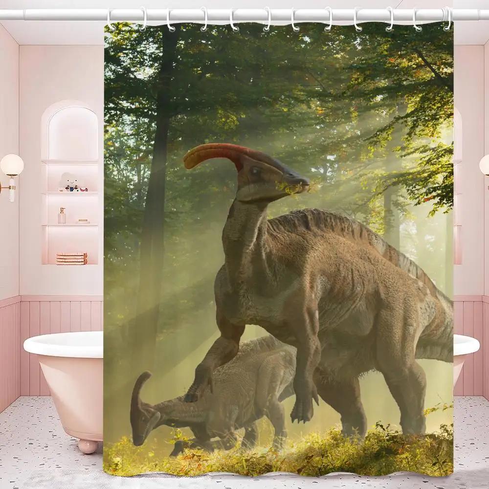 Dinosaur Art Paint Shower Curtain Bath Curtain Print Polyester Fabric Waterproof Bathroom Curtains With Hooks Bath Screen