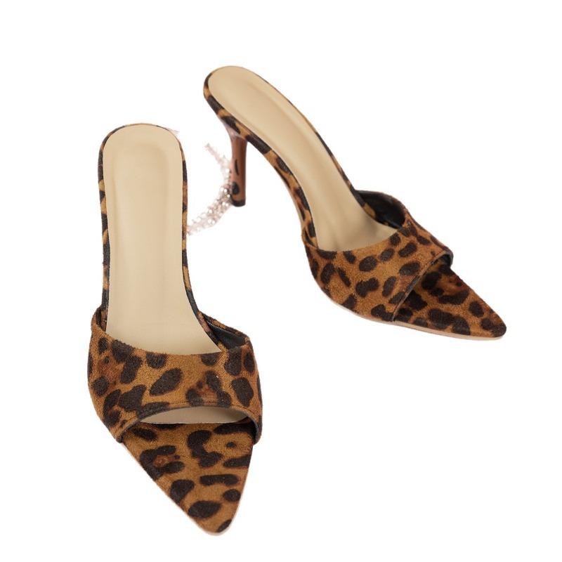 Damen Leopardenmuster Spitzschuh Stiletto Pantoletten, Einzelriemen Sommerschuhe