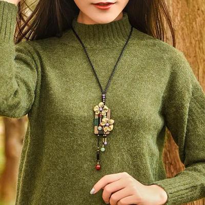 Boho Holzanhänger Halskette Hohle Blätter Kleidung Anhänger Pulloverkette Ethnische Accessoires