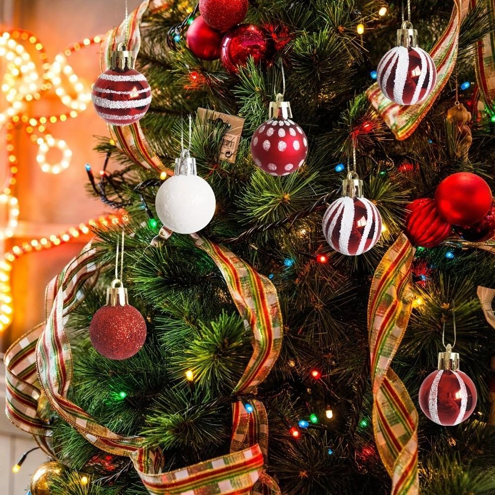 Neues 3cm Bemaltes Weihnachtskugel-Set Weihnachtsbaumkugeln Geschenkkugel Weihnachtsbaumbehang Weihnachtsdekorationen Kunststoff Weihnachtsornamentkugel
